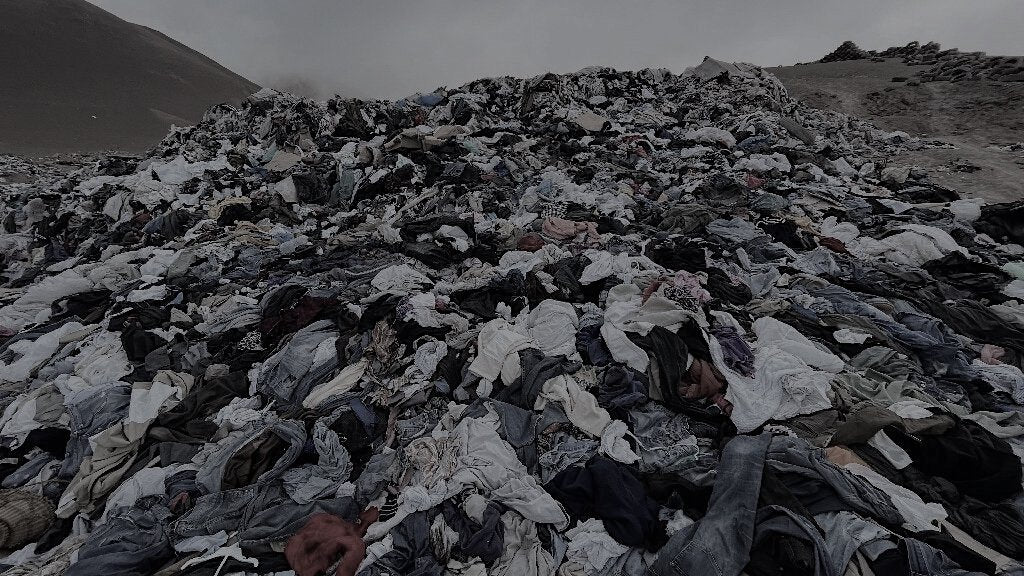 ▸ 85% of all our clothes end up in landfills. Mountains of clothes the size of Mount Everest fill the landfills every 7 minutes.